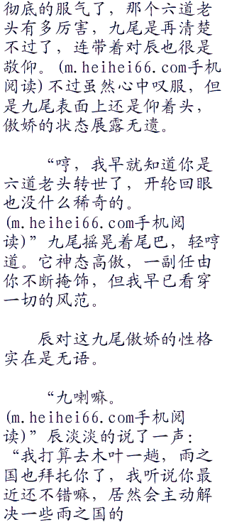 “哼,宇智波辰,终于知道果然看我了么?”九尾傲娇的扬起脑袋,口中似不屑,但九条尾巴不断的扫动,却显示出它此时的欣喜。