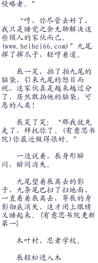 九尾目前就在雨之国,只不过这家伙现在俨然成为了雨之国的守护神兽,完全听从辰的命令,也丝毫没有作乱的迹象。
