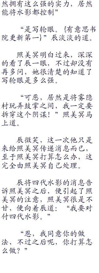 辰接到这个情报之后,立即动身前往水之国。有意.思书院首发