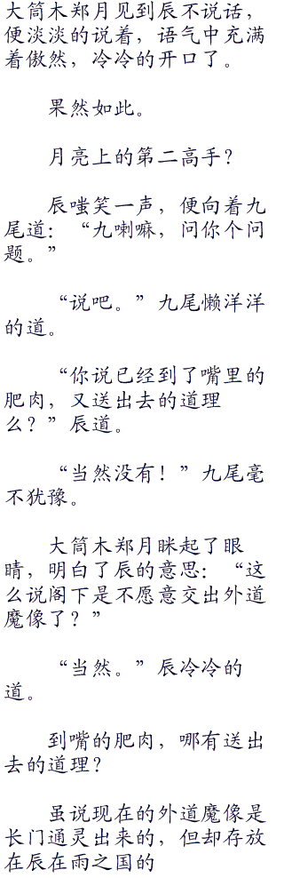 眼前这个,竟然是尾兽之中的九尾,最强的九尾!九尾居然与辰有这样的关系,确实是出人意料。