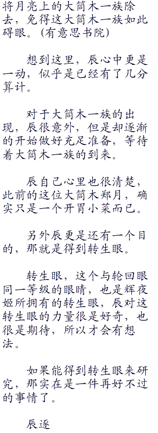 辰笑了笑,道:“可以劈开月亮的眼睛。”