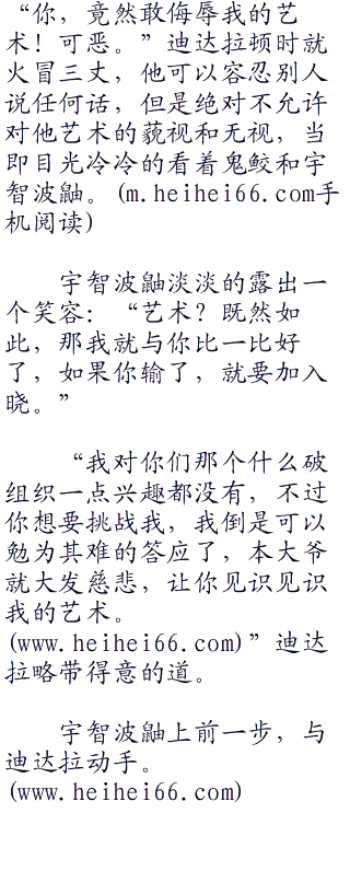 不过迪达拉实在是太喜欢搞怪了,这使得两天秤大野木为之焦心不已,甚至放出话来,如果迪达拉再敢搞破坏,那