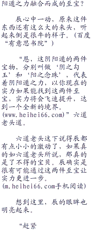 而辰却与六道老头沟通起来,道:“六道老头,你说的那两件阴阳宝物到底在哪?”辰忍不住问道。