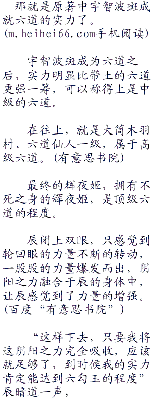 实际上辰现在的实力和普通层次的六道一级强者已经没有什么区别了,辰目前的实力,估计能与带土在吸收十尾之后,首次成为六道级强者的实力大致相当。