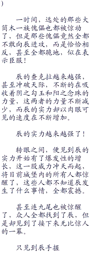辰想要吸收这两件器物的能量,让辰一举突破,成为六道一级的强者!