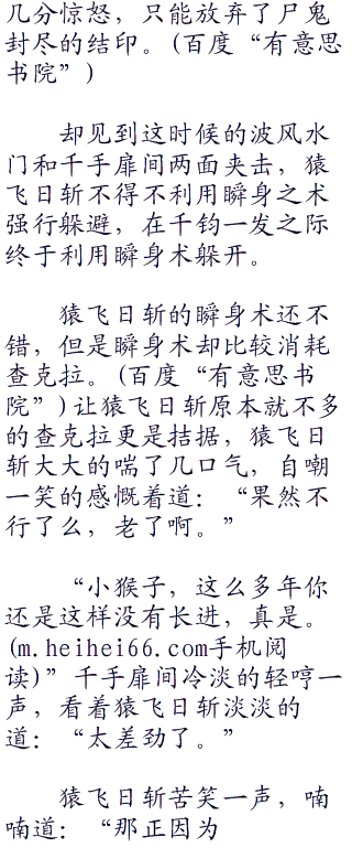 “猿飞!”猿魔怒吼一声,飞速的冲上前,飞速到了猿飞日斩的面前,帮助猿飞日斩将周围的藤蔓打断,树界降临的范围实在是太大了,囊括了整个结界,而且连结界都有动摇的趋势。