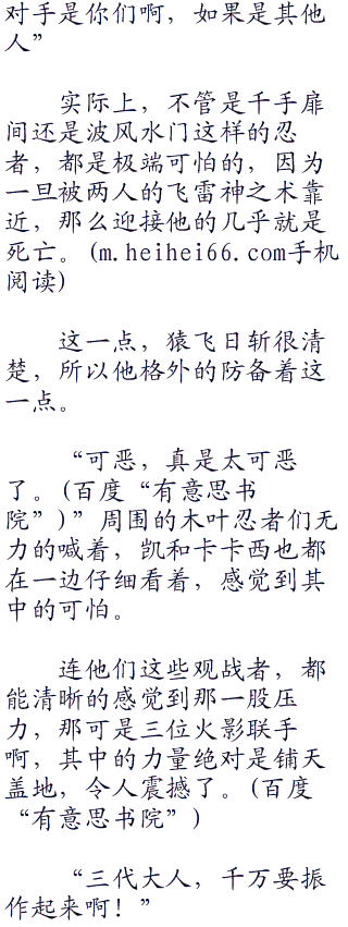 辰见到这状况,也是微微轻叹一声,眼前的状况已经很明白了,只是看到波风水门变成秽土转生的样子,有几分感慨。