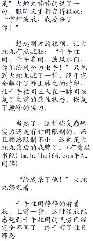 大蛇丸这话一说出口,周围的卡卡西、凯都是神色凝重的看着辰,如果真是这样,那确实是太可怕了。