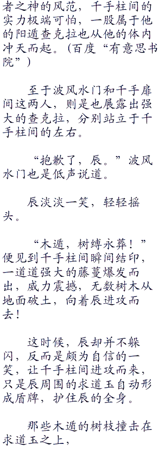 达到六道级之后,目前能与辰相提并论的人也就只有那么几个,也只有寥寥几人能让辰为之忌惮。