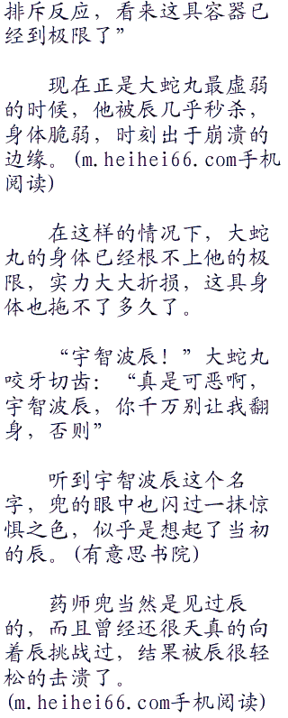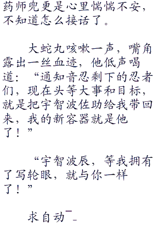 “按照剧情走向,接下来就应该是鸣人和佐助的决裂了,只可惜不知道大蛇丸那边具体情况如何了”辰低声自语。