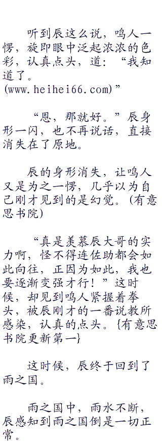 “是。”鸣人认真的看着辰,用力点点头:“我一定会努力的,会提升实力。”