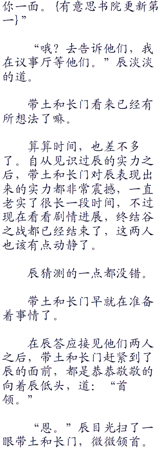 “恩,你是四代的儿子,不要让你的父亲失望。”辰嘱咐道。