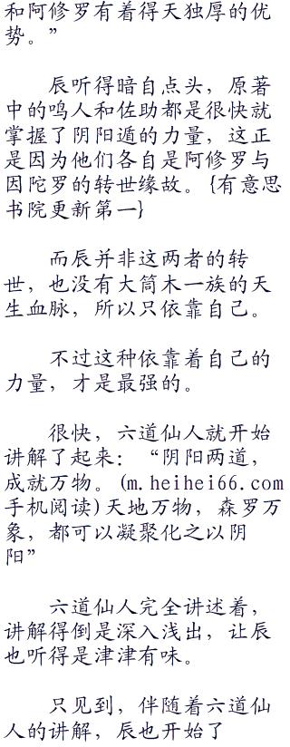 辰道:“行了老头,别抱怨了,我可是来特意请教你的。我目前也算是掌握了阴阳遁的阴阳之力了吧,可是我需要将这阴阳遁的力量发挥出来,需要你的帮助。”