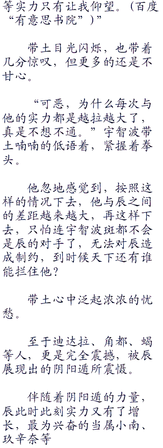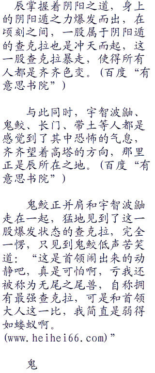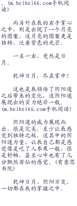 因为辰表现出来的天赋太过惊人,竟然这么快就领悟和掌握了阴阳之道?而且他很快就运用而出,真是可怕,这天赋未免也太高了。<a href="hei." target="_blank">hei.</a>