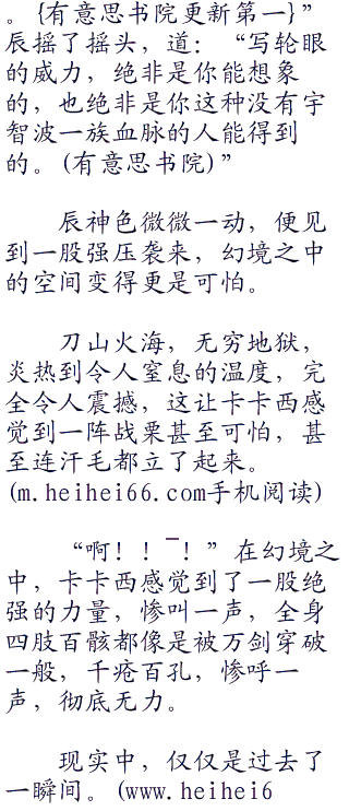 “写轮眼,你到底是”卡卡西震撼的看着辰,却见到辰眼中的三勾玉不断旋转,伴随着一股强大的阴遁力量爆发而出,让卡卡西震撼之极。<a href="hei." target="_blank">hei.</a>