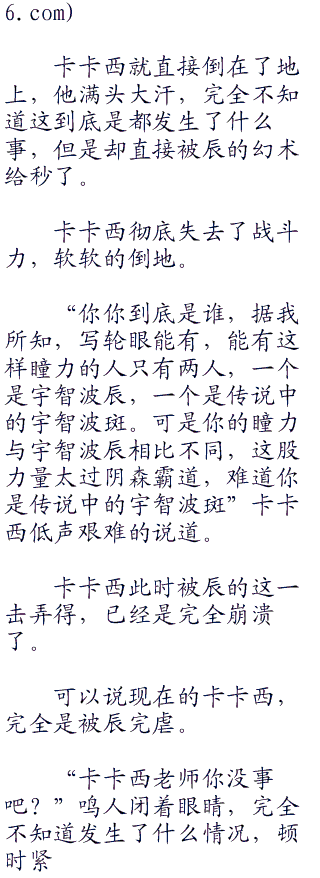 “你,你到底是什么人?”卡卡西有点艰涩的开口了,他脑海中完全没有辰的资料,也不知道这人到底是从何而来。