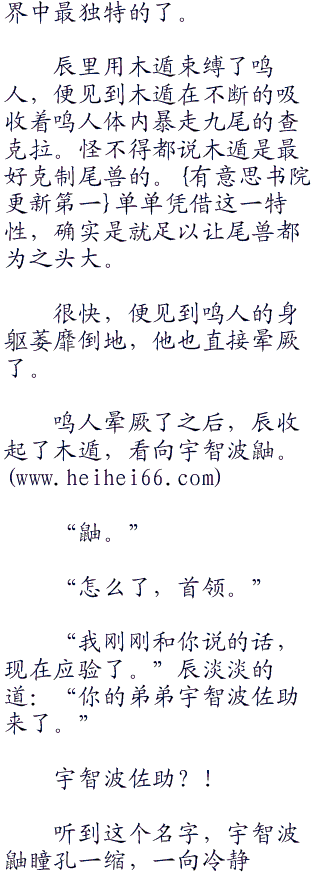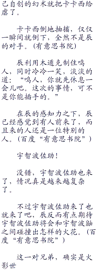 辰看了一眼鸣人,有点意外:“竟然尾兽化了么,可惜没有变成完美的人柱力啊,还是差得远呢。”