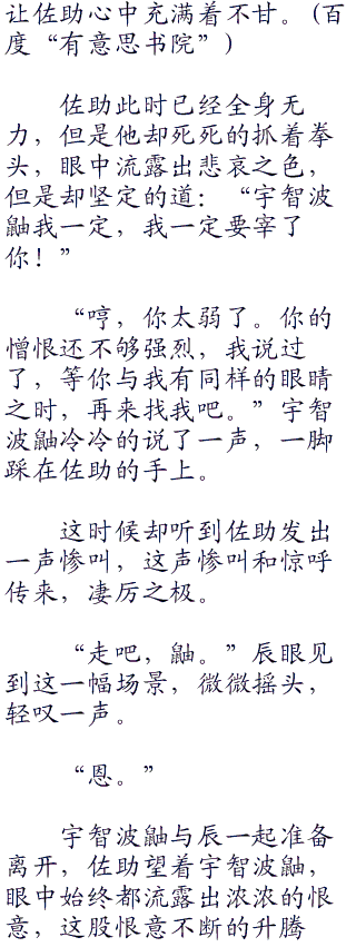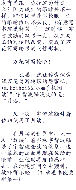 “宇智波鼬!”佐助在见到宇智波鼬的一瞬间,就差点完全丧失理智,佐助眼中迸发出浓烈炙热的仇恨之色,整个人也因为这一股仇恨而瞬间有了动力。hei.