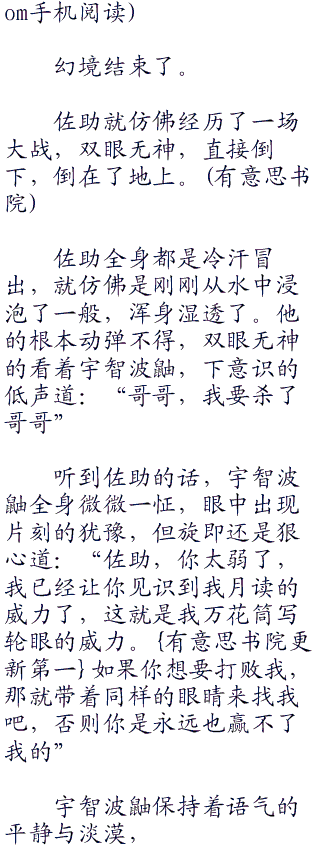 佐助感觉到宇智波鼬幻术的深不可测,心里一咯噔,感觉到了几分震撼。
