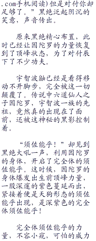 “原来如此,你的底牌就是大筒木一族族人的尸体么。”辰看向黑绝,在辰的印象中,黑绝确实是有附体这项能力的。有意思.书院首发