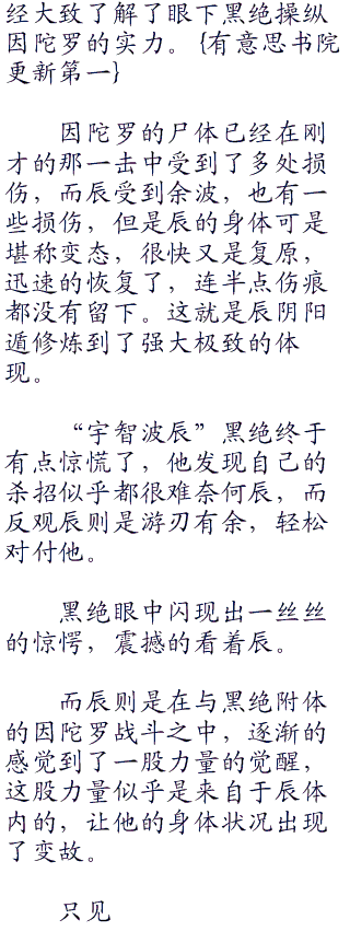 “真不愧是因陀罗啊,这力量”辰轻轻感慨了一句,眼中出现一丝讶然之色,因为这力量很强,强到让他也为之诧异的程度。