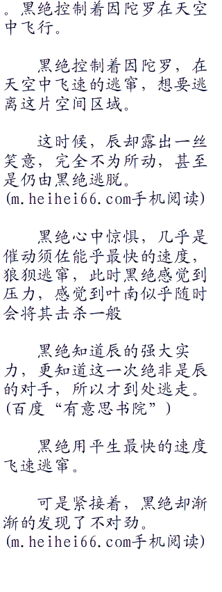 黑绝实在是想不通,因陀罗的实力已经够强了,但是为什么连辰的分毫都伤害不到?而且辰的实力表现出来的,似乎远远在他的想象之上,神秘莫测。hei.