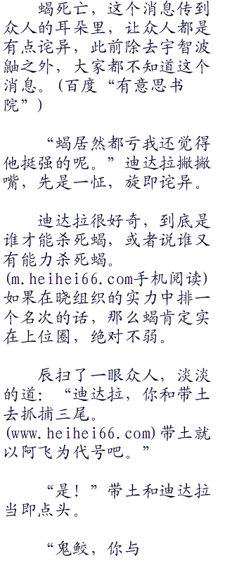 辰扫了带土一眼,见到带土神色异样,但是却没过多的反应,心下微动,看来带土还没察觉到黑绝死亡的事情。