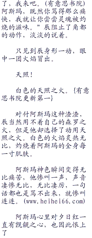 “阿斯玛,你真是”辰摇摇头,真不知道说阿斯玛什么好,这阿斯玛未免也太嚣张了,死到临头了还嘴硬,真不是一般的嚣张啊。