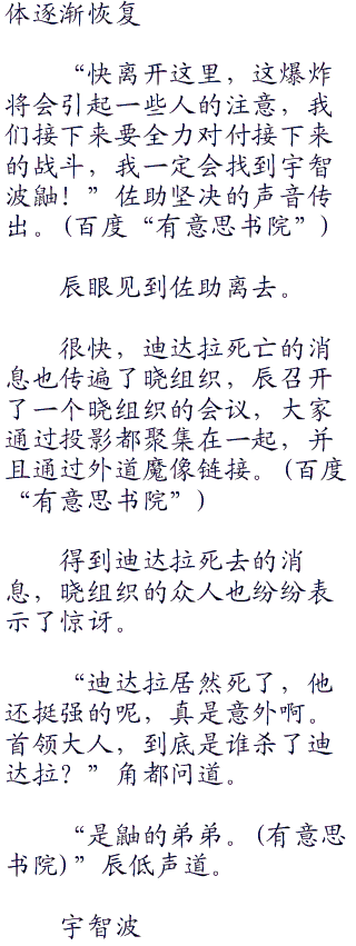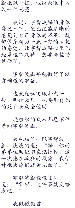 随着辰的观战,发现佐助逐渐在不知不觉之中把握了战斗的节奏,甚至掌握了迪达拉的弱点。有意思.书院首发