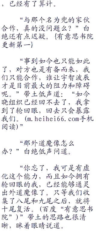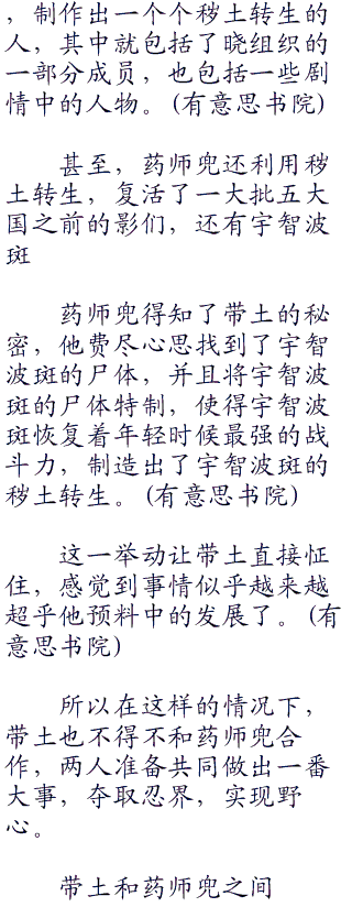 带土得到了轮回眼,实力大增,他同时拥有轮回眼和写轮眼的力量,确实是非同凡响,带土的实力增强,也达到了一个相当的高度。有.意思书院首发