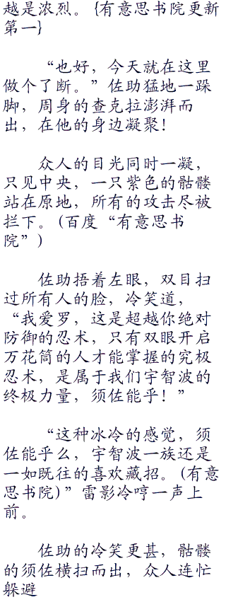 在雷影处理自己的伤口之时,我爱罗已经朝前走去,看着此时狼狈不堪的佐助,他轻叹道,“佐助啊,你的眼神还真是和以前一模一样,和我第一次见到你时相同,还是想要复仇么。”