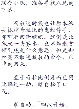 “最后给你们一次机会,把剩下的八尾和九尾交出来,并协助我完成计划,不然战争将会来临。<a href="hei." target="_blank">hei.</a>”