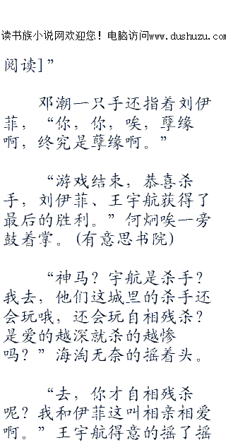 ;;;;“现在很明显了,杀手绝对就是潮哥和海淘了,因为刚才海淘被淘汰的时候,对着潮哥抛媚|眼了,两个男人,其中一个还是有妇之夫,那种暧|昧的眼神,只能说明这两人之间有什么见不得人的勾当。而潮哥对娘娘可是充满了敬畏,所以这俩大男人之间绝对有阴谋。”刘伊菲也开始满口胡诌了。