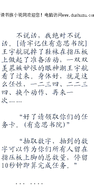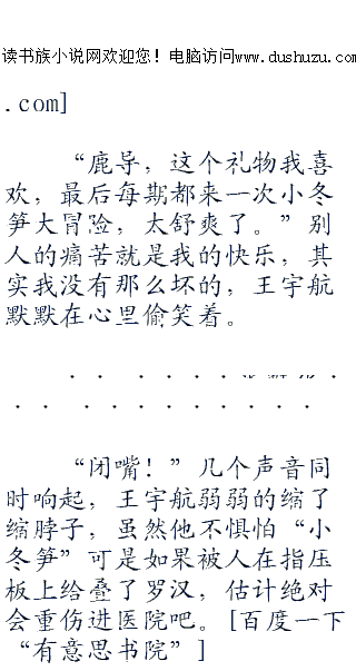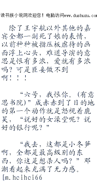 ;;;;“呵呵,你傻啊,你什么时候见过六号直接告诉咱们最终任务的?还不是被玩死玩活的找线索,然后,绝大多数都会发现有些线索没有一点点卵用,要么就是根本看不懂什么意思,虐杀?你不觉得隐藏在黑暗中的神秘嘉宾会虐杀我们吗?”王宇航不屑的看了一眼成赤赤,然后对着