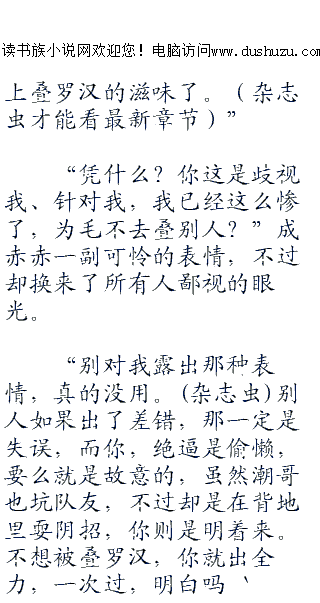 ;;;;“呵呵,收起你的那副嘴脸,我可不吃你那套。不过我可以给你一点动力,如果等会任务没有一次性通过,而且是你的原因,那么就不要怪我们,让你体验一把,指压板