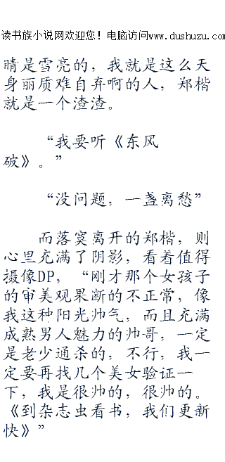 ;;;;“那个,美女啊,我难道不帅吗?”郑楷说着摆了一个酷酷的poss,双眼不停地对着女孩子放电。