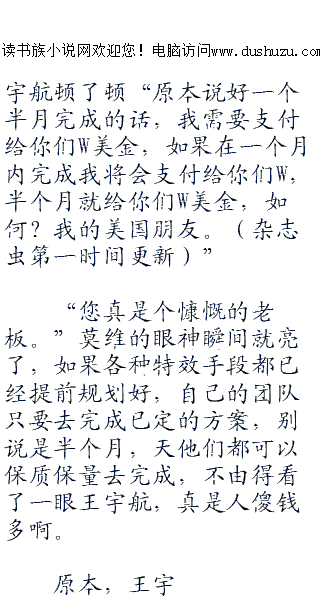 ;;;;王宇航仅仅在《分手大师》的剧组待了一天,就赶回了杭州,因为美国的工业光魔已经打来了电话,他们的特效团队已经坐上了飞机,明天估计可以来到杭州。
