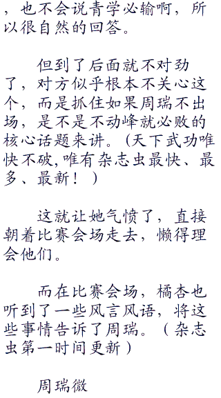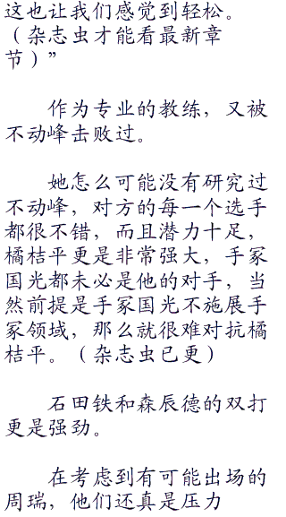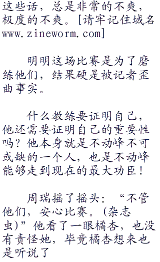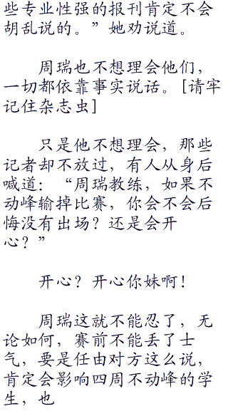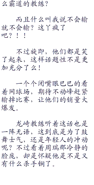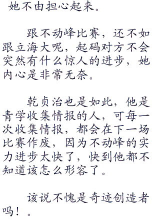 一些记者眼前放光的看着比赛,巴不得这场比赛不动峰惨败,他们好有话题大写特写,否则如果不动峰胜利的话,他们可没有什么话题性写了。