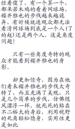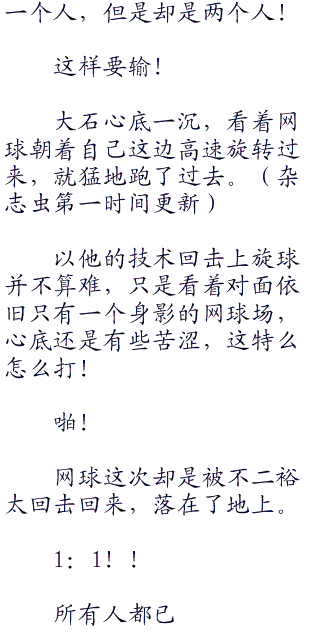 记者也蒙了,慌忙的看着网球场,眼睛眨也不眨。