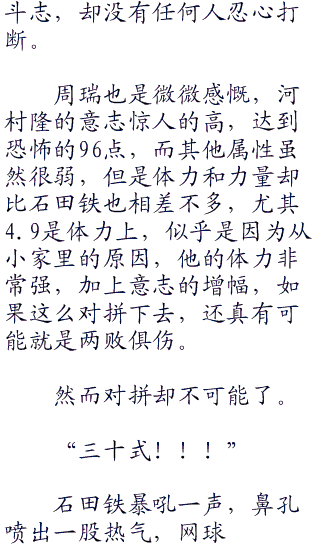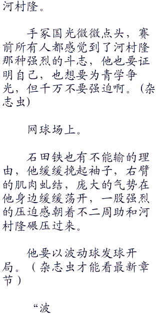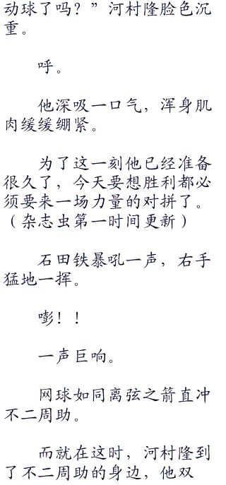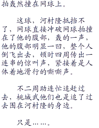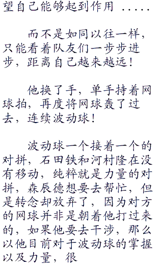不二周助的消失发球让石田铁和森辰德无从应对,这不是说有那种短暂爆发就可以利用的,现在这球的距离连冲刺波动球都够施展了。