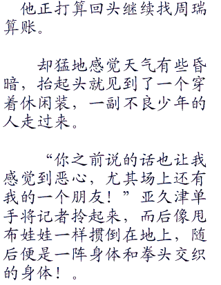 不二周助静静的看着河村隆,良久,沉默的点了点头,右手的网球拍却又攥紧了许多。