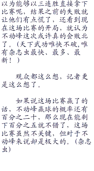 这场比赛进行的很快,打了二十分钟,结果就已经出现了。