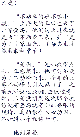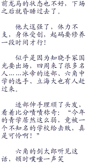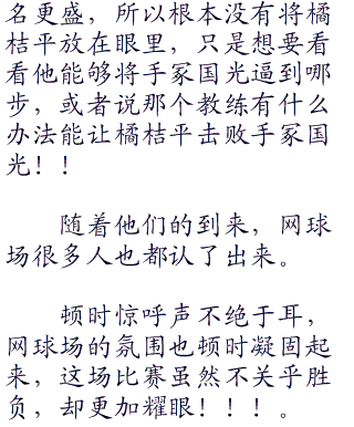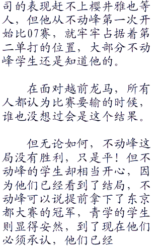 青学学生都有些不敢相信,同时很多记者也相当惊讶,他们之前觉得不动峰表现不错,但也没想到他们真的可以把青学逼到这种地步,而且打的非常精彩。
