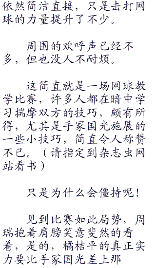 切原赤也舔了舔唇,没有多说什么,只是双眼也看向了周瑞,那个人好像很有意思啊!