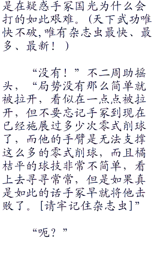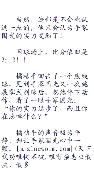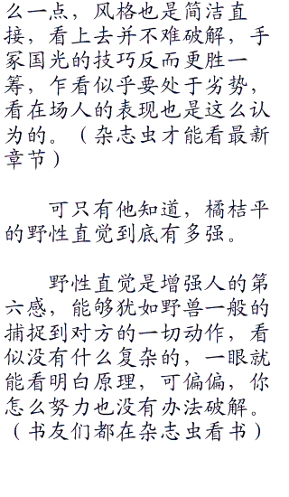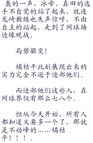 立海大的真田缓缓地说道:“橘桔平的野兽直觉吗?确实不简单啊!”