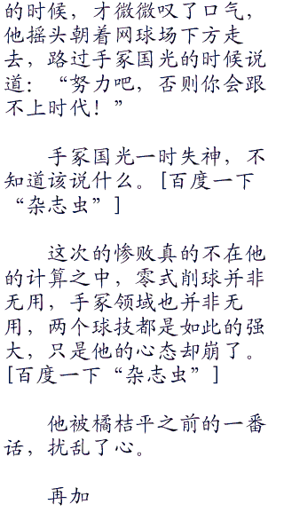 迹部更是尴尬起来,之前还那么说,现在还真没啥说的了。