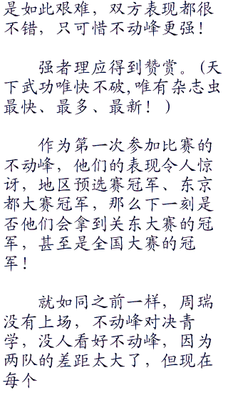 嘭嘭嘭的闷沉声不绝于耳,谁也没想到橘桔平能掌握无我境界,而且还学会了波动球!