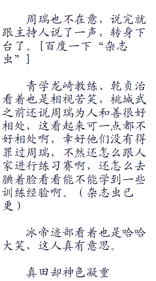 他们没有丝毫的反感,反而觉得周瑞教练这是真性情,霸气测漏!