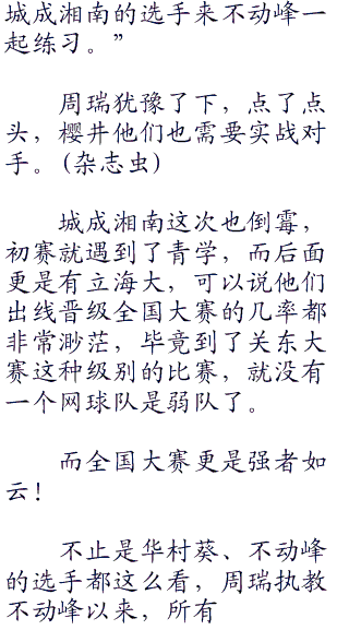 冰帝的迹部微微皱眉,他们的学校还没有对手啊,难道刚开始就要面对不动峰吗?虽然他是有自信,但是却也不用这样吧?