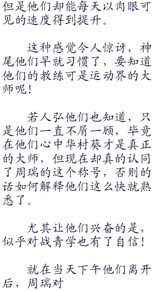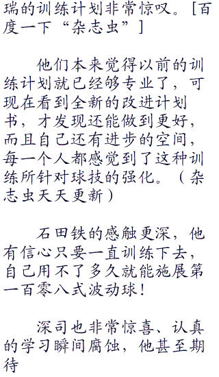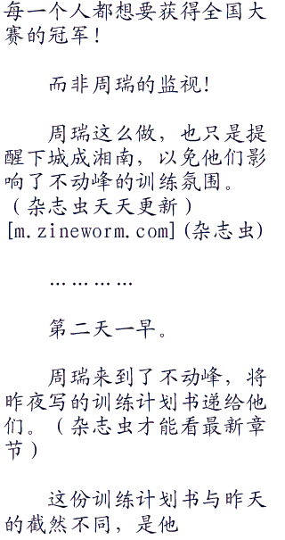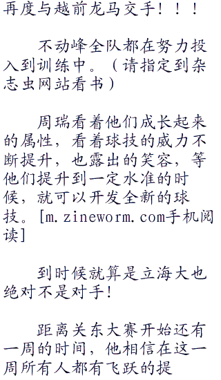 “顺便说一句,你们的训练项目是不动峰以前的训练强度,只要努力每一个人都能完成!”周瑞说完就转身离开了。
